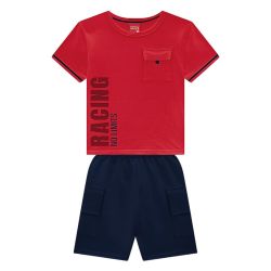 Conjunto Kyly com camiseta regata em malha e bermuda em moletom sem felpa. A estampa com tema “Racing” deixa o visual moderno e cheio de atitude.
