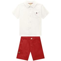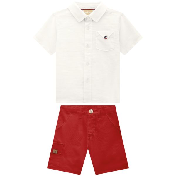 Conjunto Milon sofisticado e cheio de charme, composto por camisa em tecido maquinetado e bermuda em sarja leve. A camisa apresenta textura delicada e bolso frontal, enquanto a bermuda acompanha cinto ajustável, unindo elegância e conforto para um visual perfeito em ocasiões especiais.