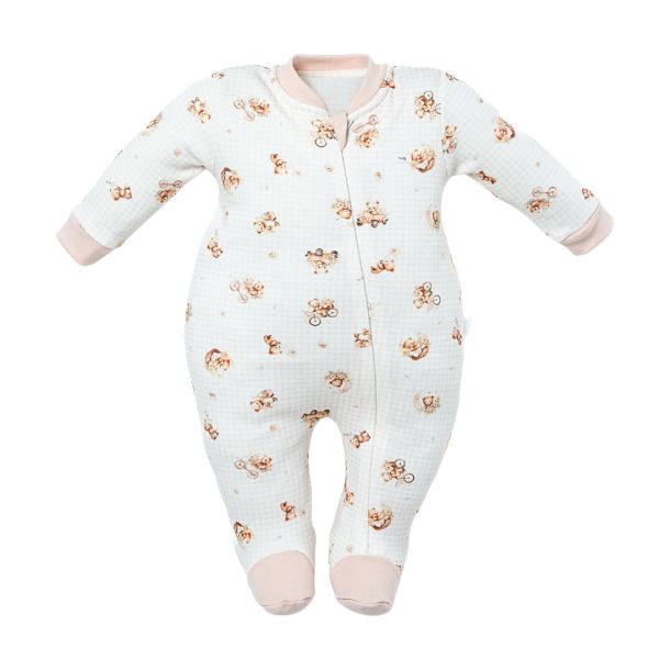 Macacão longo Hug em suedine 100% algodão, macio e aconchegante para o bebê. Com estampa delicada, mangas longas e abertura frontal em zíper, é prático na hora de vestir e trocar, garantindo conforto e estilo em todas as ocasiões.