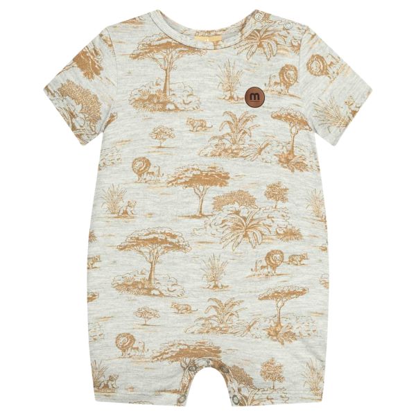 Macaquinho Milon em estilo “selva” com estampas de animais, confeccionado em cotton macio com elastano, com abertura entrepernas em botões de pressão. Prático, confortável e cheio de charme para os primeiros meses.